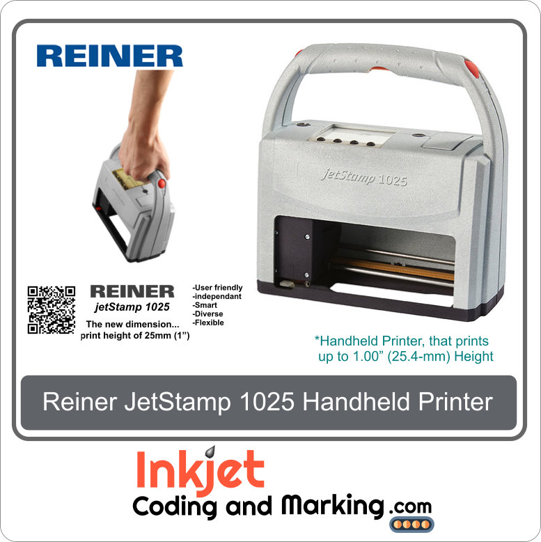 The jetStamp 1025 is a handheld printer that directly marks products, curragated boxes or documents, simply and quickly. Easily configure this JetStamp for Handheld Inkjet Printing of Lot numbers, Expiry date, time and any Text, this device can also print graphics and barcodes. With the MP ink, it is also possible to print on non-absorbent surfaces such as metal and plastic, or glass. The JetStamp 1025 is mobile, handy and easy to operate and program. It comes complete with its own software and weighs just over 1 pound.