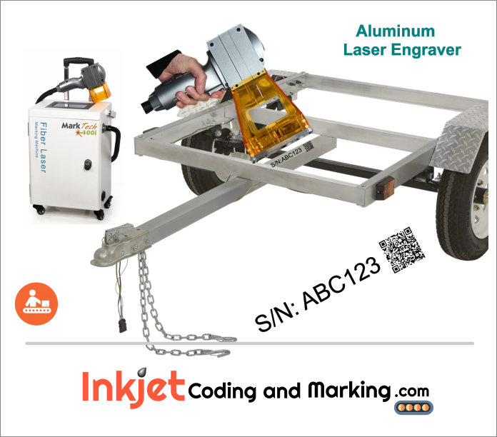 The MarkTech 100i Portable Laser Engraver processes metal materials like Steel, Aluminum, Brass and some Plastics. Now you can Laser Mark and Laser Label via directly marking onto products and parts. Easily configure for printing Serial Numbers, Date and Time Code Marking, Stencil Text characters. This Laser Marking Machine can also Print Graphics in raster or vector formats and will produce machine-readable 1D Barcodes, QR Codes & the industrial 2D Datamatrix Code. The MarkTech 100i Handheld Portable Laser Engraver is mobile, with Handheld Laser Engraver head and easy to operate and program to produce Permanent Marking and Coding. Powerful 100W Fiber Laser Engraver equipped in this Handheld Metal Laser Engraver and weighs approximately 39 pounds, for practical portable laser engraving.