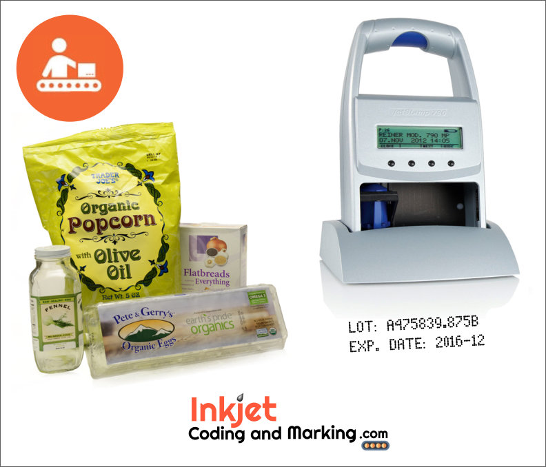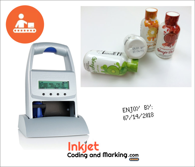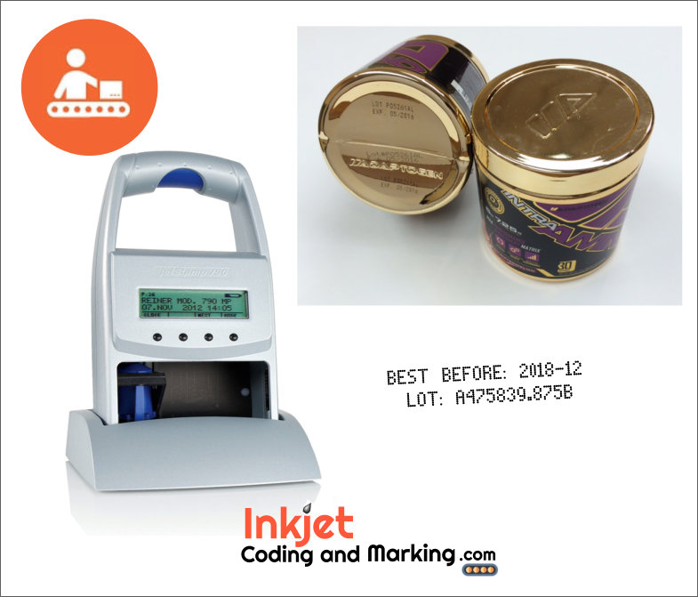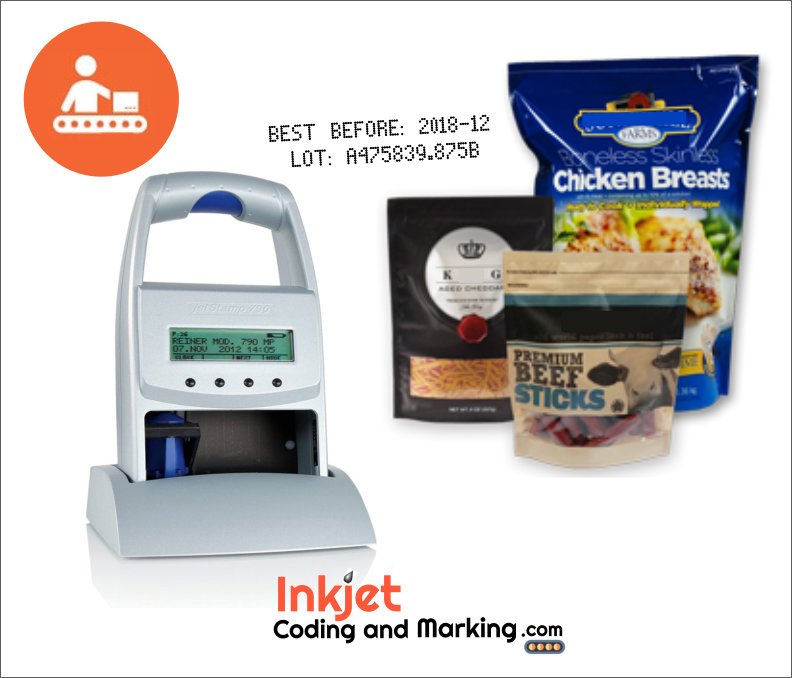 The Jetstamp 790MP offers one or two line inkjet printing. This Reiner Inkjet, is a Jetstamp 790 capable printing Text characters and Date and Numbers. Reiner Inkjet JetStamps, can print on Non-Porous surfaces. choose the standard MP Quick-Dry Ink or for more aggressive ink adhesion, the QDX Ink. Also the Jetstamp 790MP price is affordable option for Inkjet Coding and Marking.